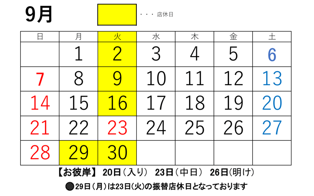 📢9月・10月のおしらせ📢